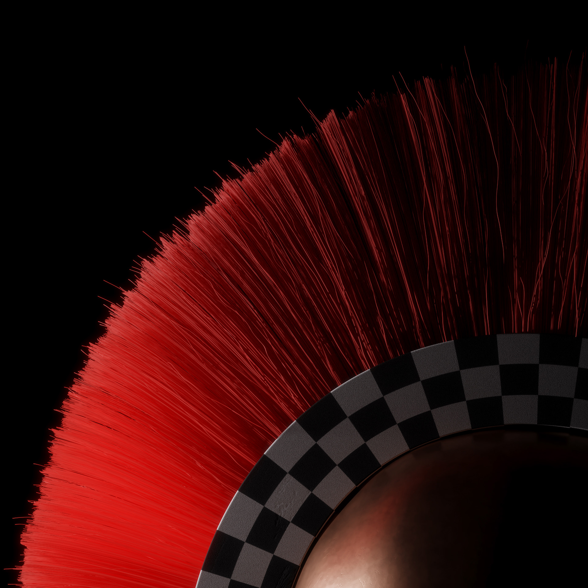 3D-Modell eines korinthischen Helms mit Lophos auf Baumwollpapier von Hahnemühle geprintet und in handgefertigten Rahmen eingefasst.